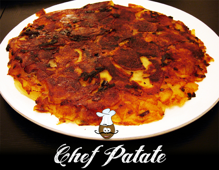 Pour changer un peu des classiques galettes de pommes de terre, je vous propose de réaliser une galette géante, avec du comté râpé et relevée d’un oignon frit. Son mode de cuisson lui donne une texture fondante et une croute croquante avec un aspect caramélisé à tomber. Vous allez l’adopter, c’est sûr !