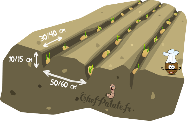 Le maitre mot est « patience ». Ne vous précipitez pas pour planter vos patates. Attendez que le sol soit suffisamment réchauffé (au moins 10°C) et sec. Un sol trop froid et trop humide risque de faire « pourrir » vos semences. D’une manière générale, ne plantez pas avant le début du printemps dans les régions à climat doux. Dans les autres régions attendez le milieu du printemps voire la fin du printemps dans les régions les plus froides.